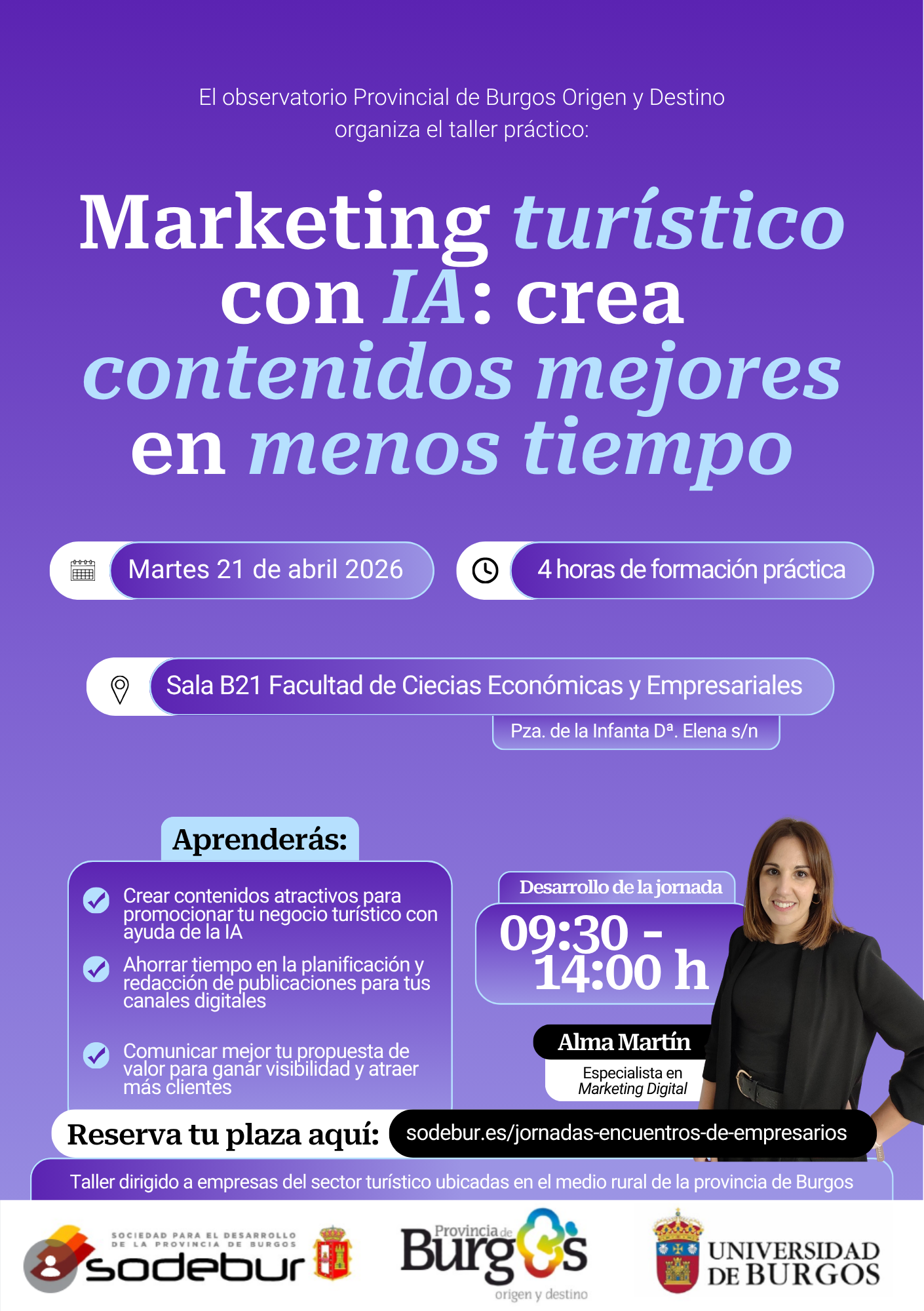 SODEBUR junto con el Observatorio Provincia de Burgos Origen y Destino organizan este taller práctico sobre marketing turístico con IA: crea contenidos mejores en menos tiempo
